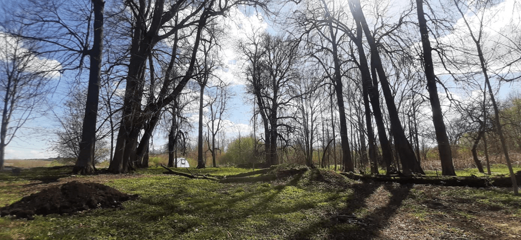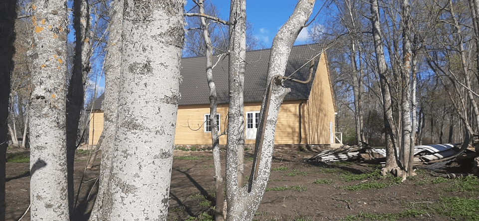 Kolm puud tuleb veel maha langetada. Kahjuks on nad kuivanud ja eelmine aasta nendeni lihtsalt ei jõudnud. Üks neist juba tormiga murdus pooleks ja tegi pättust. Üritame nüüd hullemat vältida.